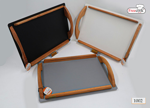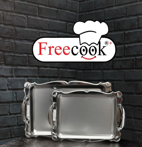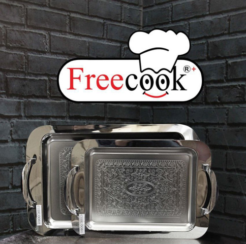 سینی مستطیل پایه دار فری کوک دسته نقره ای بزرگ(دور دالبر)
