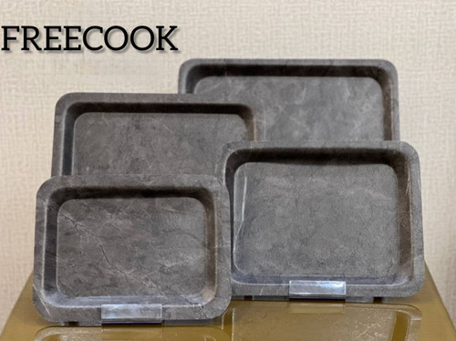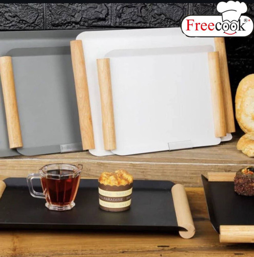 سینی مستطیل پایه دار فری کوک دسته نقره ای کوچک (دور دالبر)