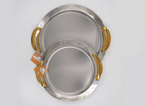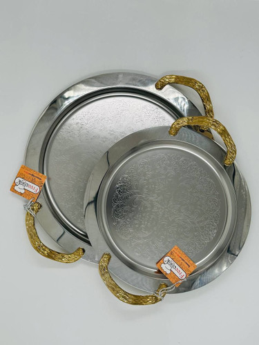 سینی گرد جفتی دسته طلایی (دسته پوست ماری)