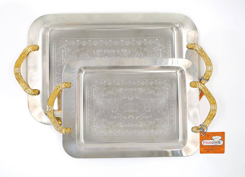 سینی مستطیل جفتی دسته طلایی (دسته پوست ماری)