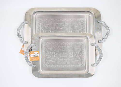 سینی مستطیل جفتی دسته نقره ای (دسته پوست ماری)