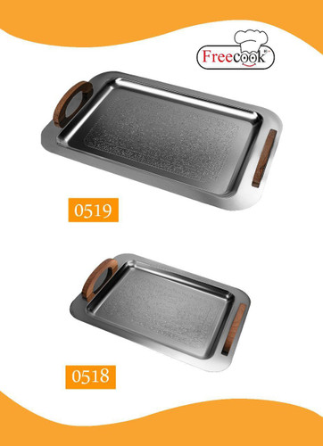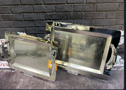سینی مستطیل جفتی دسته نقره ای (دسته فری کوک)