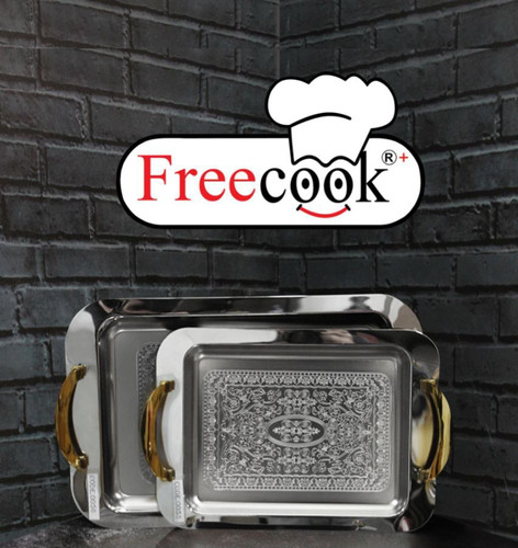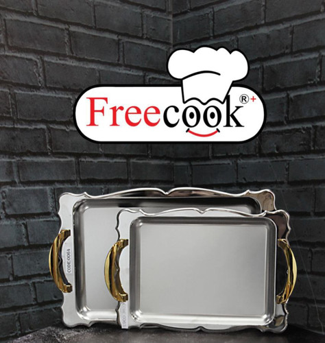 سینی مستطیل بزرگ فری کوک دسته طلایی (دور ساده)
