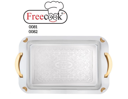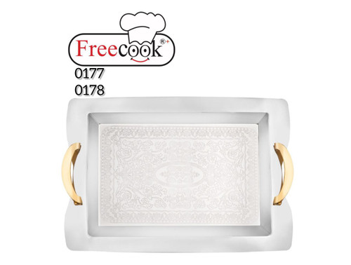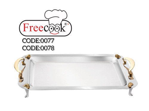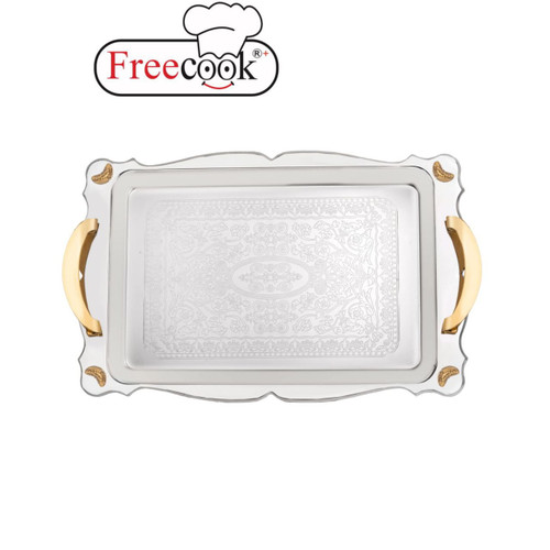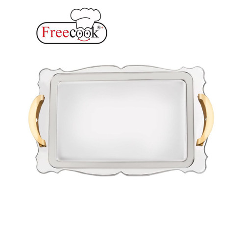 سینی مستطیل پایه دار فری کوک دسته طلایی بزرگ(دور دالبر)