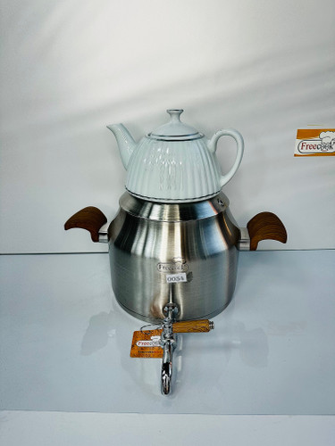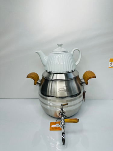 کتری قوری استیل شیردار با قوری چینی