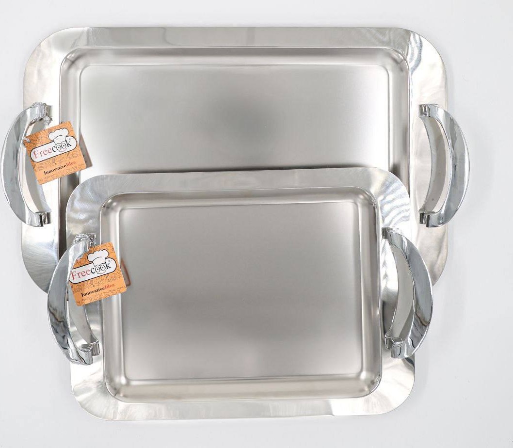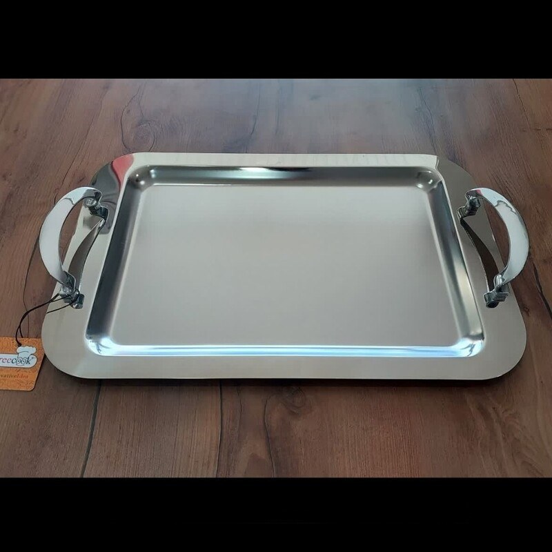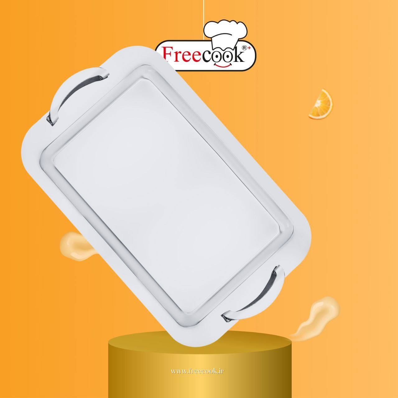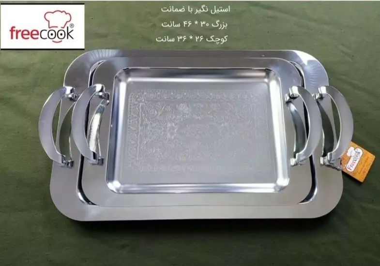 سینی مستطیل فری کوک دسته نقره ای سایز کوچک(دور ساده)
