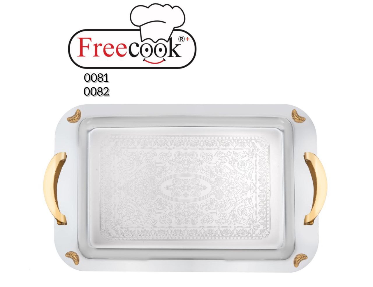 سینی مستطیل پایه دار فری کوک دسته طلایی بزرگ (دور ساده)